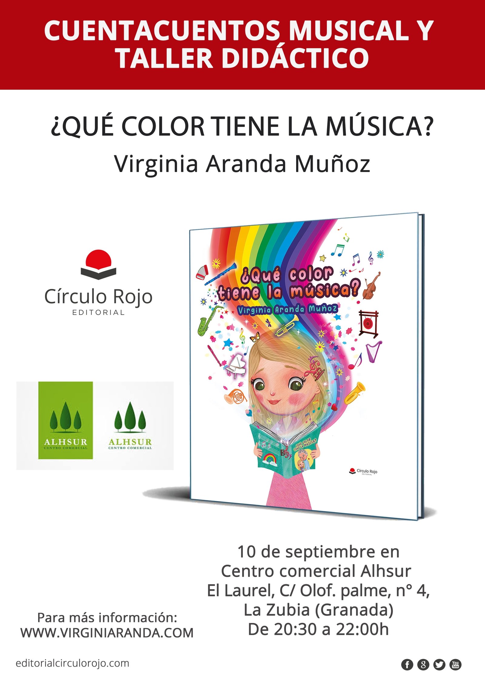 ☀️ El próximo 10 de septiembre, tendréis la oportunidad de disfrutar del Cuentacuentos Músical de la obra ¿Qué color tiene la música? realizado por la autora, en compañía de un grupo de alumnos y alumnas de la banda municipal de Cijuela.